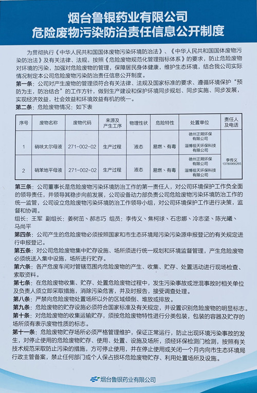 煙臺魯銀藥業有限公司有毒有害物質年度排放報告